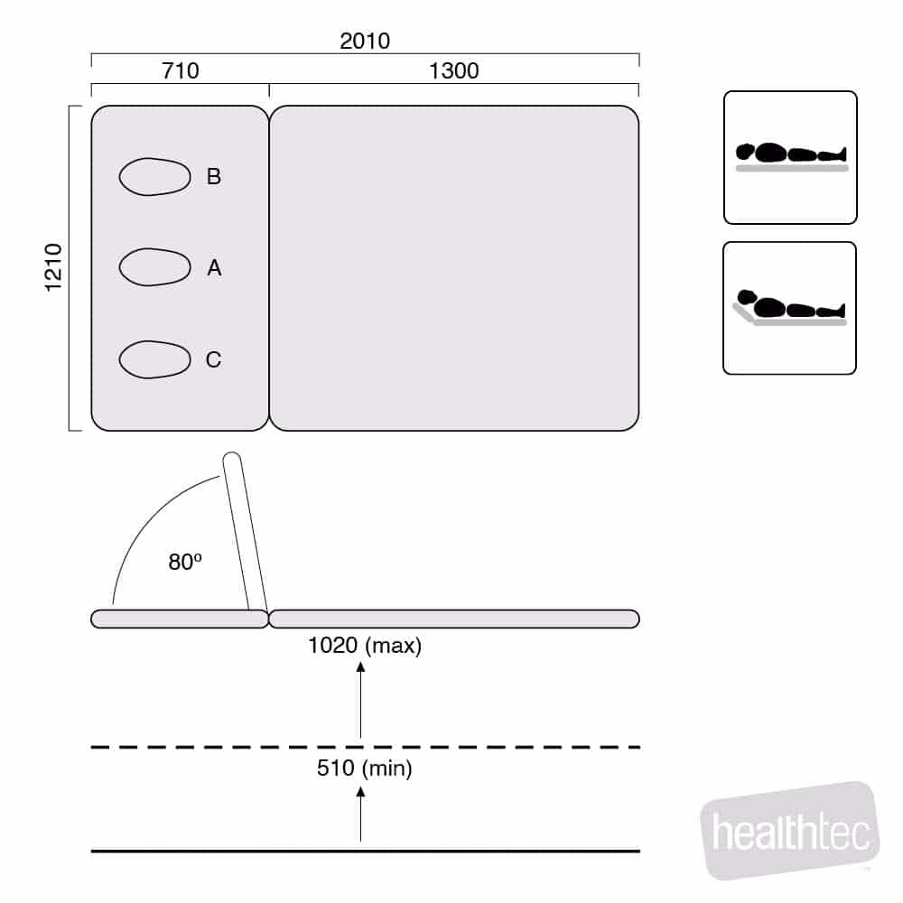 With a treatment area of 1210 x 2010mm and low 510mm minimum height our Bariatric Neurological Bobath plinth provides excellent access for patients with limited mobility or for wheelchair transfers. The Back Rest can be manually adjusted from flat to +80º degrees while the electric height adjustment can be quickly set at the touch of a button reducing fatigue or back strain on the practitioner.