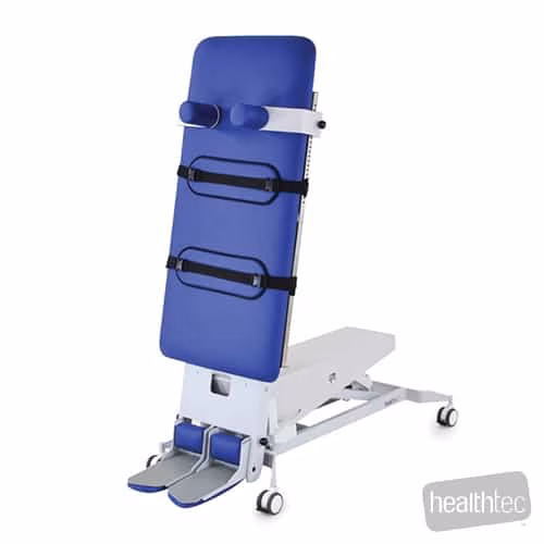 The smooth quiet tilt function from horizontal to +75° allows for infinite adjustment in between and is supplied complete with three extra wide patient safety straps, multi-function hand switch and central locking castors.