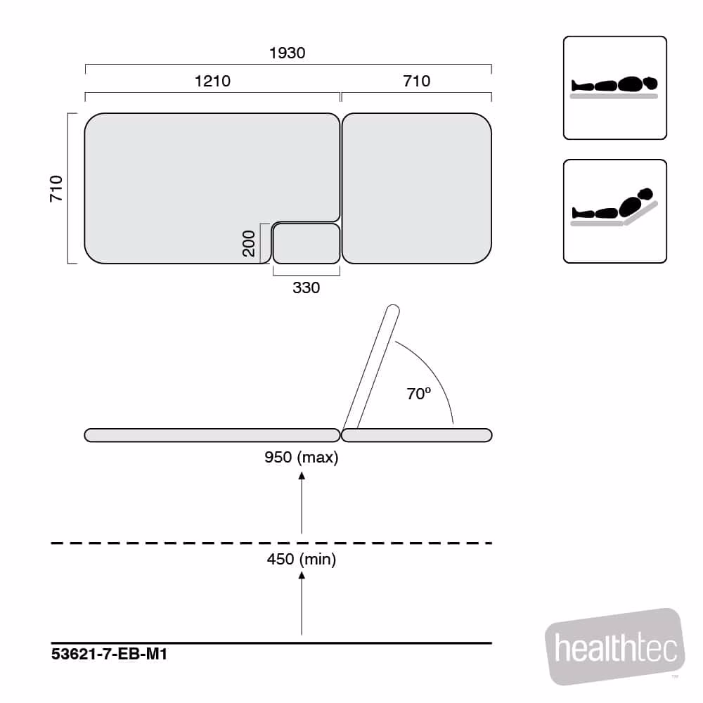 This section table is standard with an electrically operated Back Rest that can be adjusted from flat to +70º enabling a comfortable seated or semi-reclined position for the patient and fill section to allow the table to be a full examination table when required.